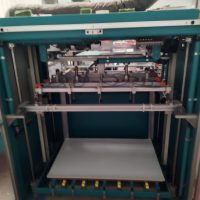 Encolador automático para papel, papel laminado, tela y otros materiales. Permite encolar y colocar cartón, para la producción de encuadernaciones, cubiertas hechas con una o varias piezas de cartón y para el forrado. – Alimentador de hojas de pila ascendente con registro de colocación lateral. – Unidad de encolado de superficie superior para cola caliente y fría.